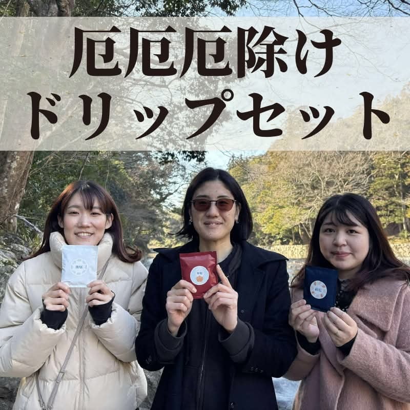 今年のクレモナは3人が厄年。 ということで、 前厄・本厄・後厄、それぞれの厄除けブレンドが完成しました。 ドリップバッグ3袋セットでの販売です。