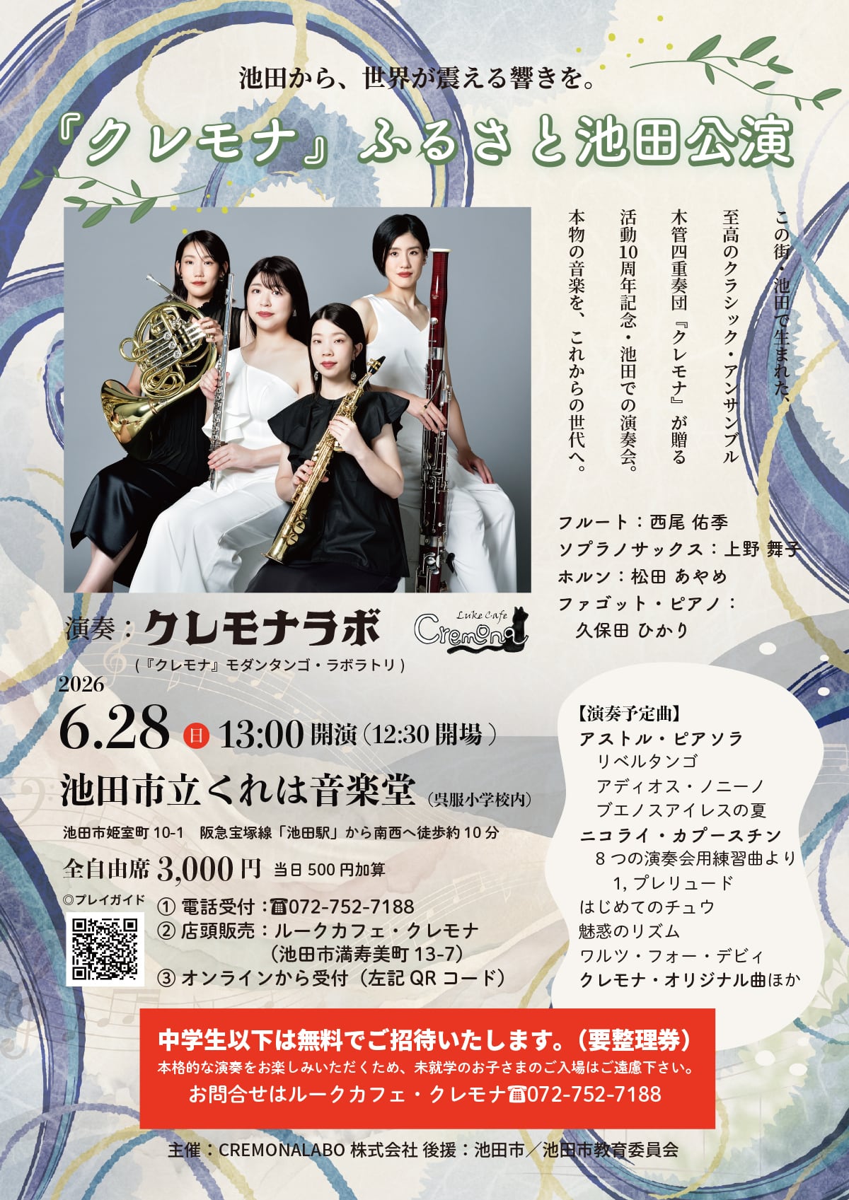 【チケット】2026年6月28日(日) 『クレモナ』ふるさと池田公演@くれは音楽堂
