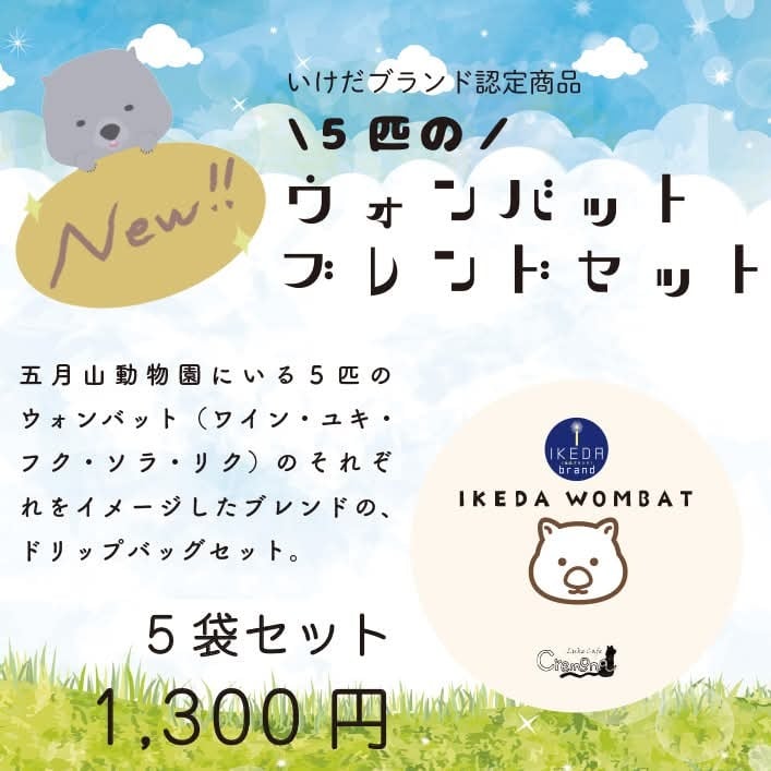 【池田ブランド認定商品】ウォンバットブレンドのドリップバッグセット(5袋入り)